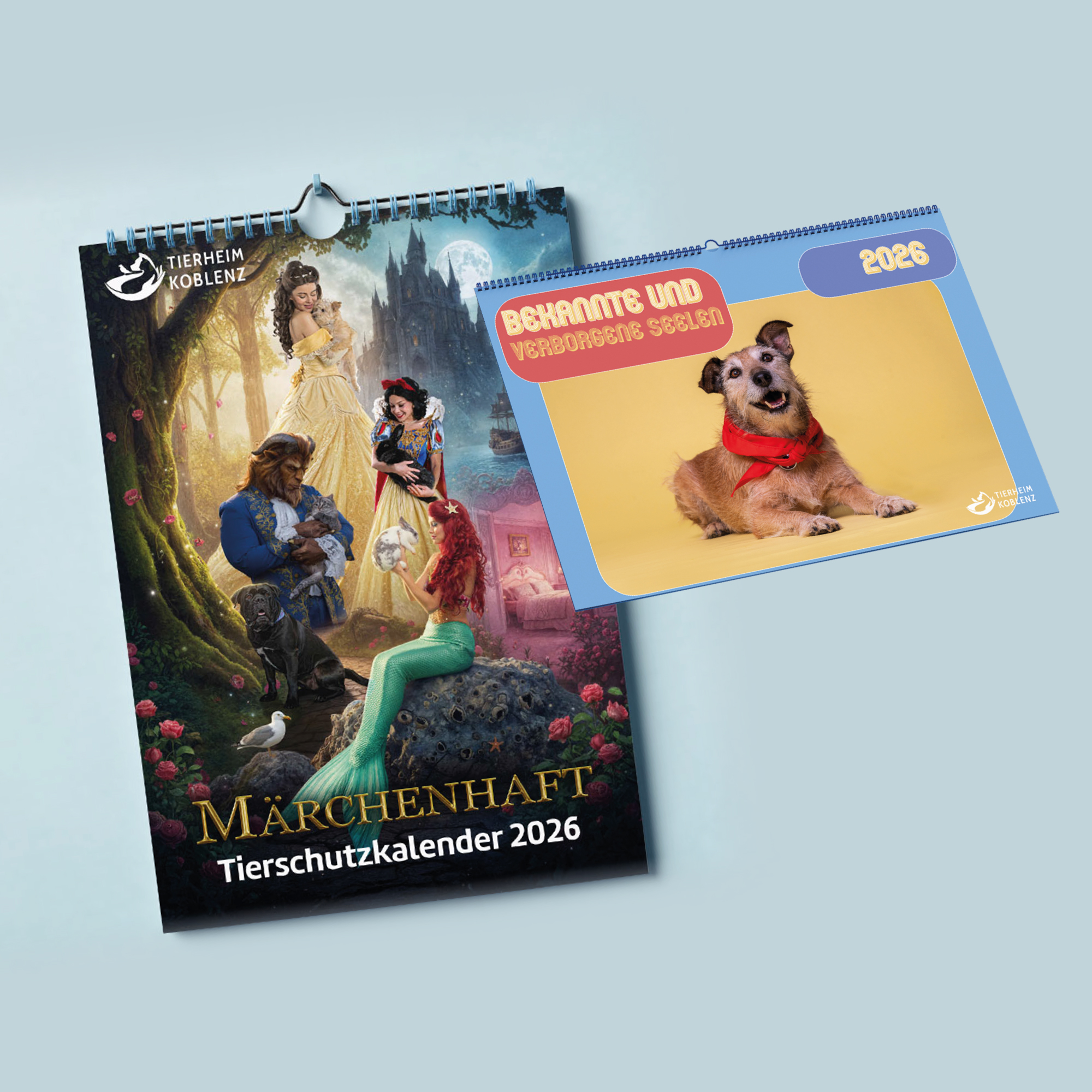 Jeder verkaufte Kalender – ob MÄRCHHAFT oder Familie – leistet einen wertvollen Beitrag zur Unterstützung des Tierheims Koblenz und hilft, unseren Tieren eine bessere Zukunft zu schenken.